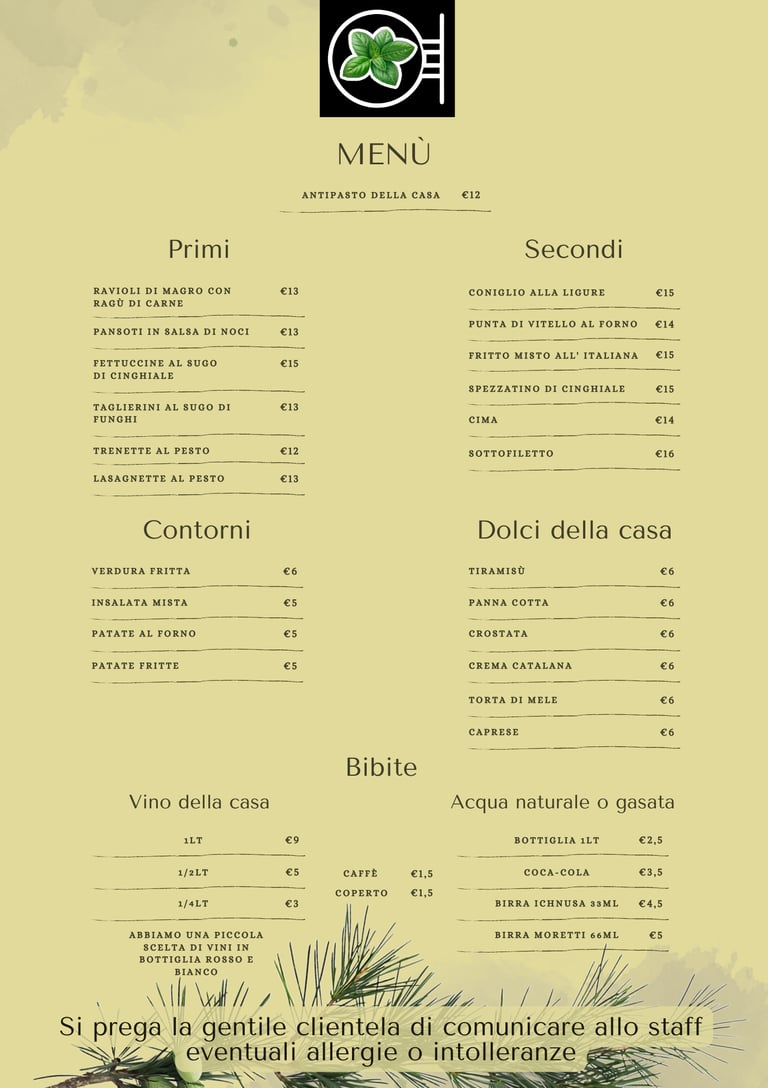 Il nostro menù, ispirato alla ricca diversità culinaria della Liguria, offre un'ampia selezione di piatti autentici che delizieranno i vostri sensi.